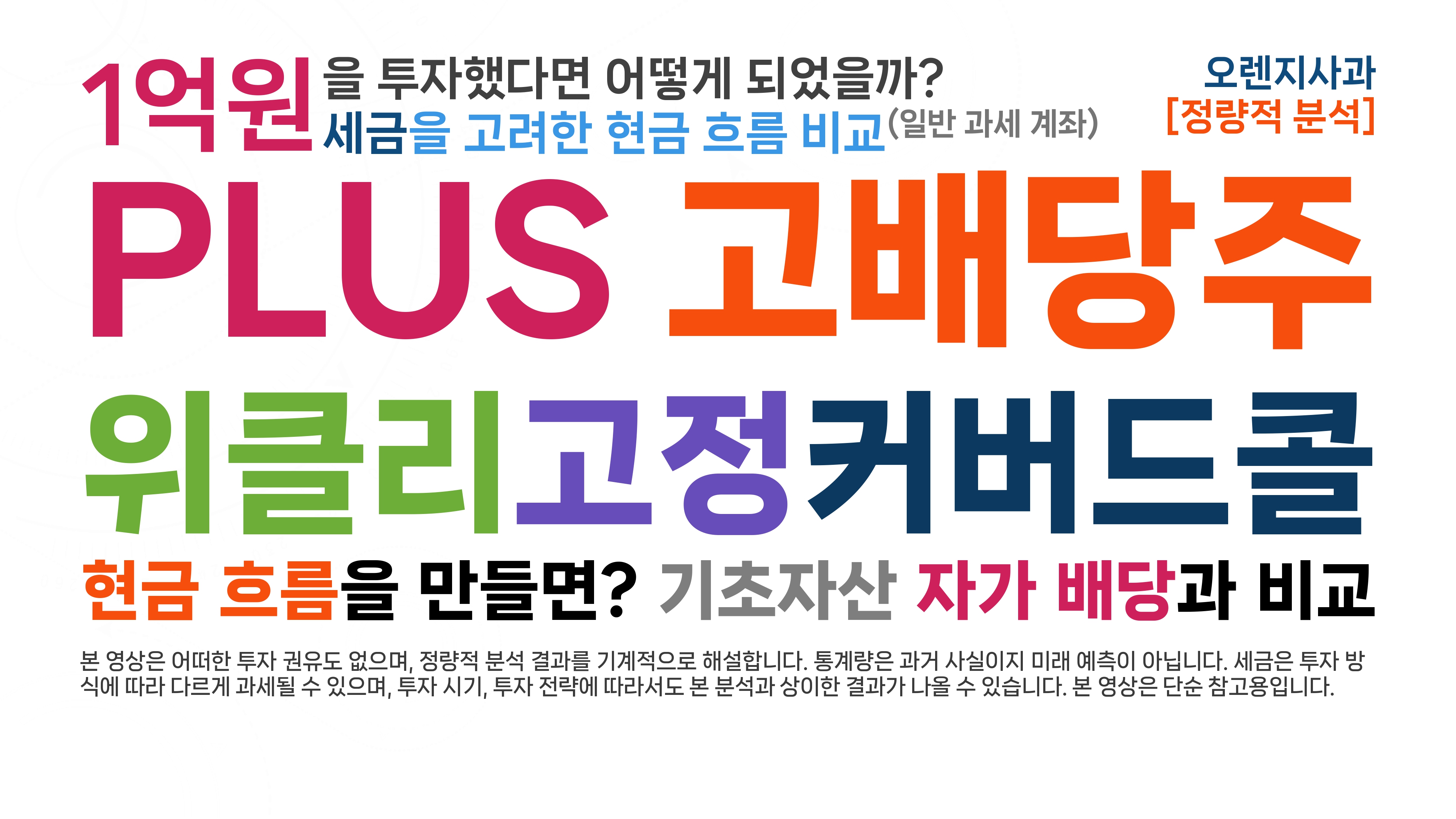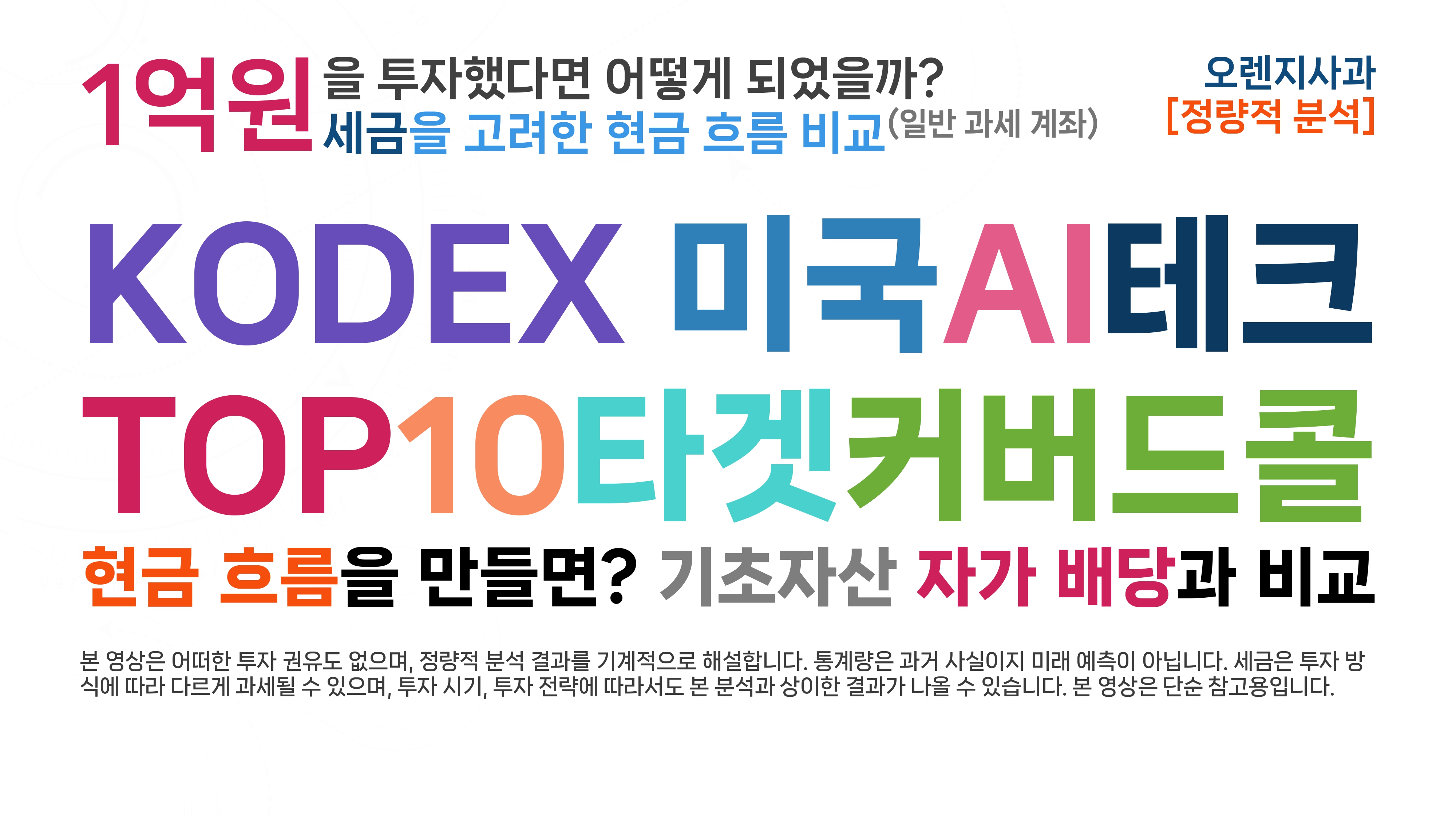 NEOS(네오스)의 SPYI는 S&P 500 지수를 기초자산으로 하는 액티브 커버드콜입니다. 국내 상장 상품 중에서는 '타겟' 커버드콜에 가깝습니다. 본 영상에서는 SPYI의 첫 거래일에 SPYI와 SPY에 각각 1만 달러를 투자하고, 동일한 세후 현금 흐름을 만들었을 때, 어떤 결과를 얻게 되었을지 분석해 봅니다.일반 과세 계좌를 가정하여 다음과 같은 설정으로 설명 및 분석합니다.커버드콜: SPYI기초자산: SPY분석기간: 2022년 8월 30일 ~ 2025년 11월 6일 (약 3.2년)SPYI의 첫 거래일 2022년 8월 30일 종가로 1만 달러를 거치식으로 투자배당소득세: 15.4%(국내)/15%(해외) (위클리 커버드콜의 프리미엄 배당금은 비과세)양도소득세: 15.4%(국내)/22%(해외) (국내..