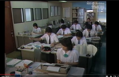 아래 사진은 1980년대 한 대기업의 사무실 풍경입니다. 맨 앞자리에 앉아있는 여성분이 지금은 존재하지 않는 타자수입니다. 대개 해당 사무실의 경리 업무도 함께 보았는데, 회의 등에 사용할 문서를 타자기로 타이핑하는 업무를 담당했습니다.