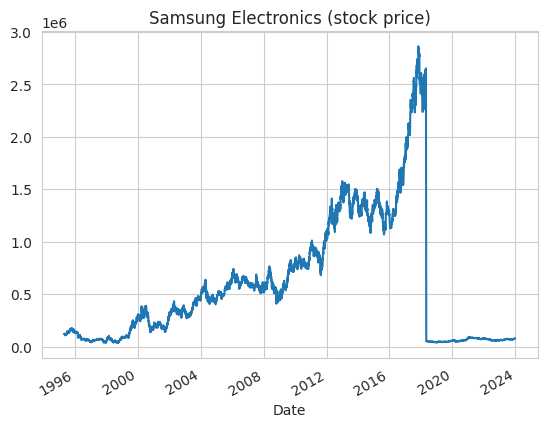 시가/고가/저가/종가는 모두 수정전 가격이므로 사용할 때 주의해야 합니다. 아래와 같이 삼성전자의 액면 분할이 고려되어 있지 않습니다. 당연히 배당도 고려되어 있지 않습니다. 수정주가가 필요한 경우에는 FinanceDataReader를 쓰는 것이 좋습니다.