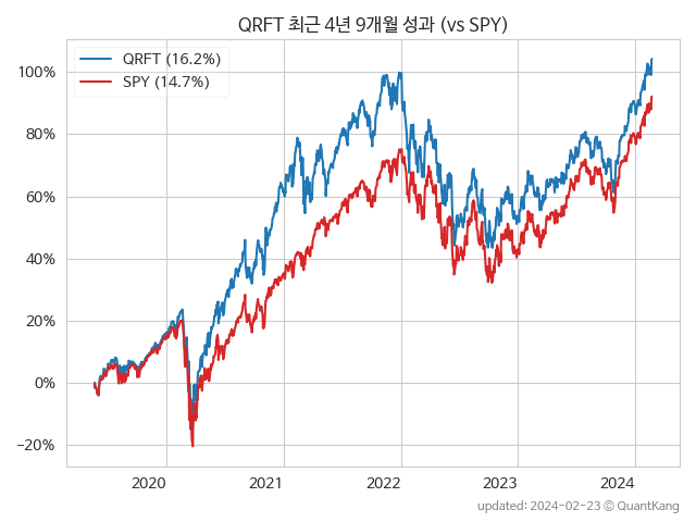 QRFT는 SPY에 비해 연 1.5% 높은 수익률을 보였습니다.