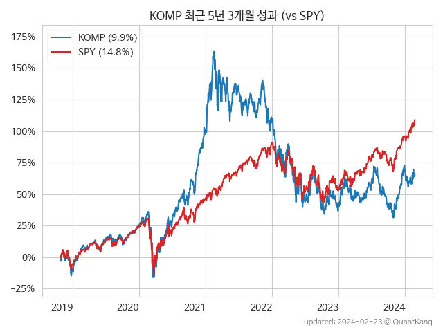 KOMP는 상장된 지 5년 3개월이 된 ETF로, 혁신적인 기술 업종 내에서 인공지능을 이용하여 주요 종목을 선별한다고 합니다.