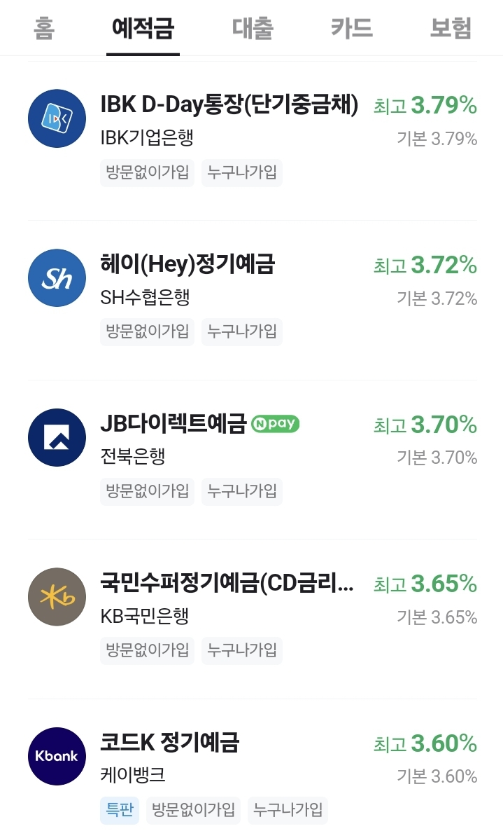 아래는 네이버 페이의 예적금 비교입니다. 1년 수익률로 표시되어 있습니다만, 연수익률의 절반 정도가 두 ETF의 6개월 수익률과 비슷함을 알 수 있습니다.
