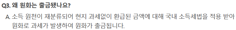 - 증권사에 따라서는 일정 기간이 지난 후에도 원화가 부족한 경우 달러를 자동 환전해서 국세청에 배당소득세로 납부합니다.