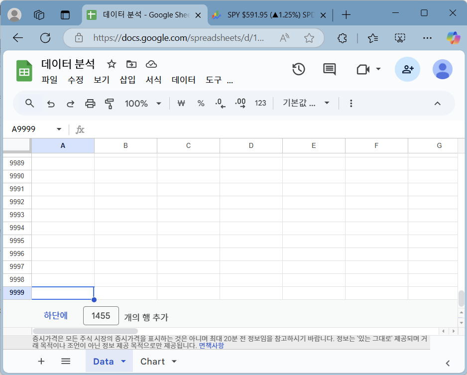 구글 시트를 이용하여 특정 종목의 주가 데이터를 가져오고, 종가를 이용하여 그래프로 나타내는 기초적인 방법을 살펴보았습니다.