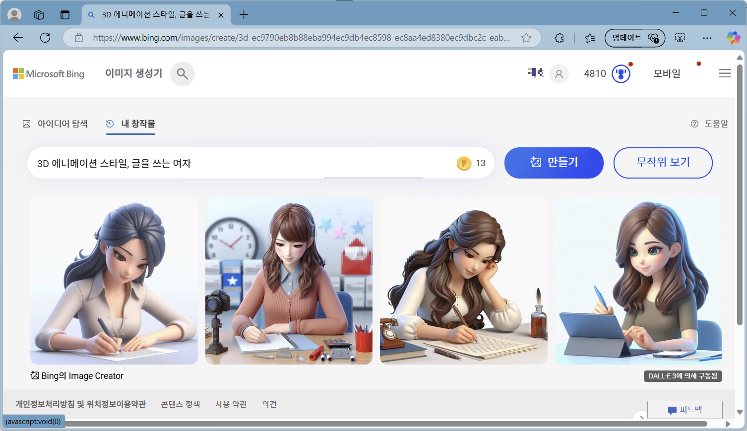 이미지 크리에이터를 이용한 가로 모드 그림 생성