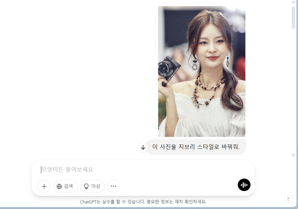 이어지는 글: 챗GPT(ChatGPT)로 사진을 지브리 만화 스타일로 변환한 사례 (인물 사진 #1)