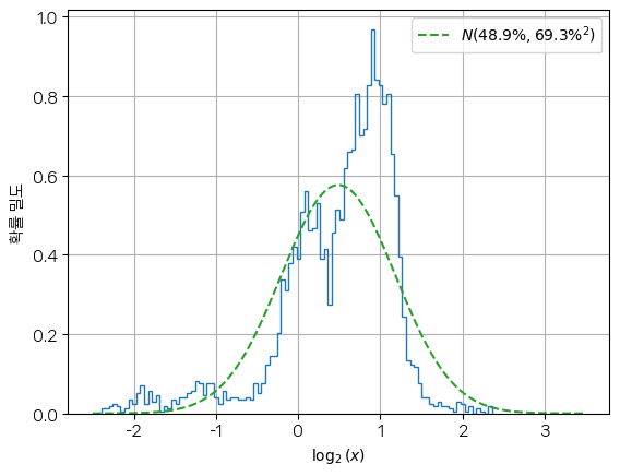로그 수익률 분포에서 이해하기 쉬운 밑수를 지정하는 경우