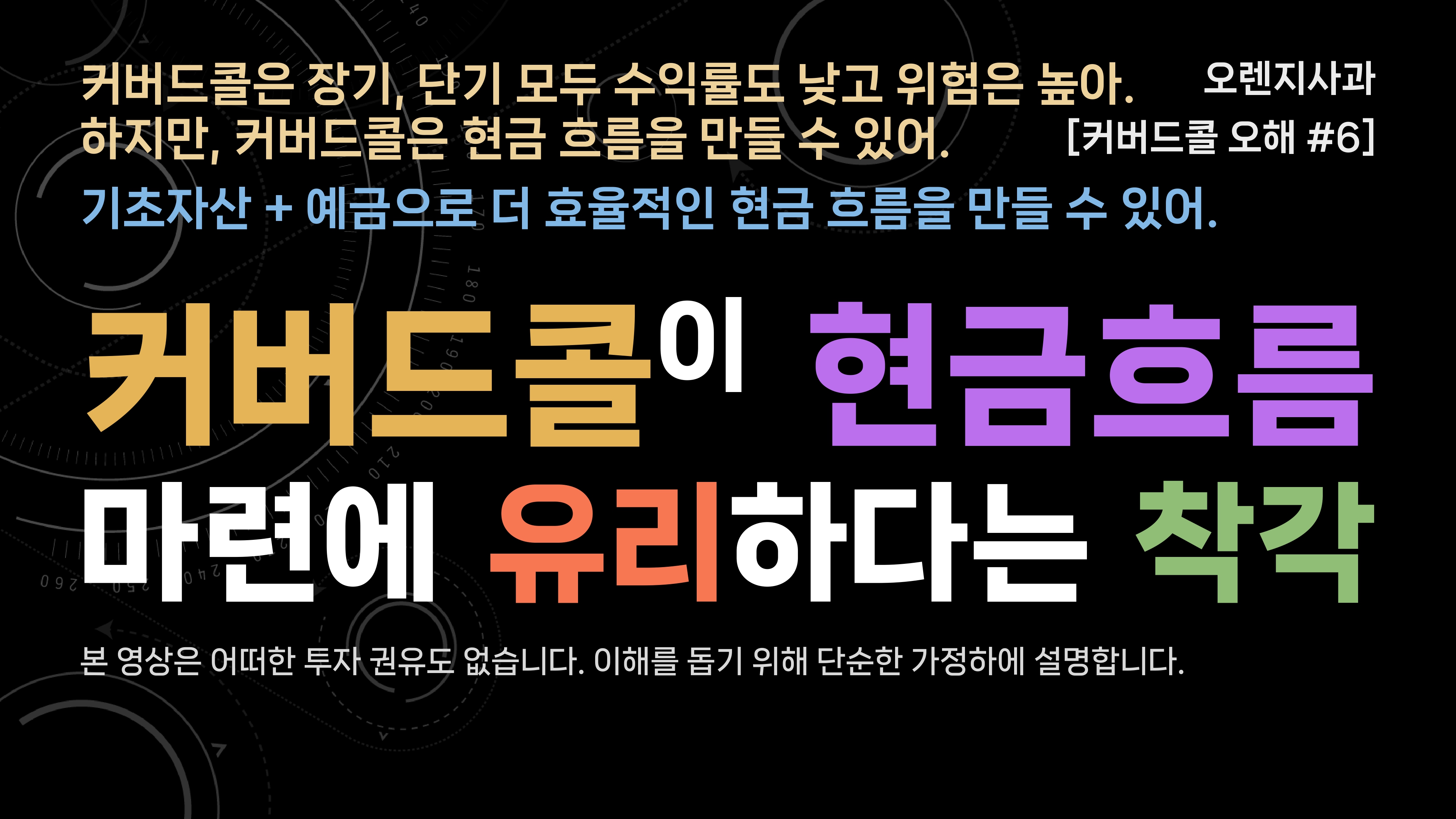 [커버드콜 오해 6] 현금 흐름 마련에 커버드콜이 유리하다는 착각 (기초자산 + 예금 포트폴리오와의 비교) - https://youtu.be/JVYUTpa4BJA