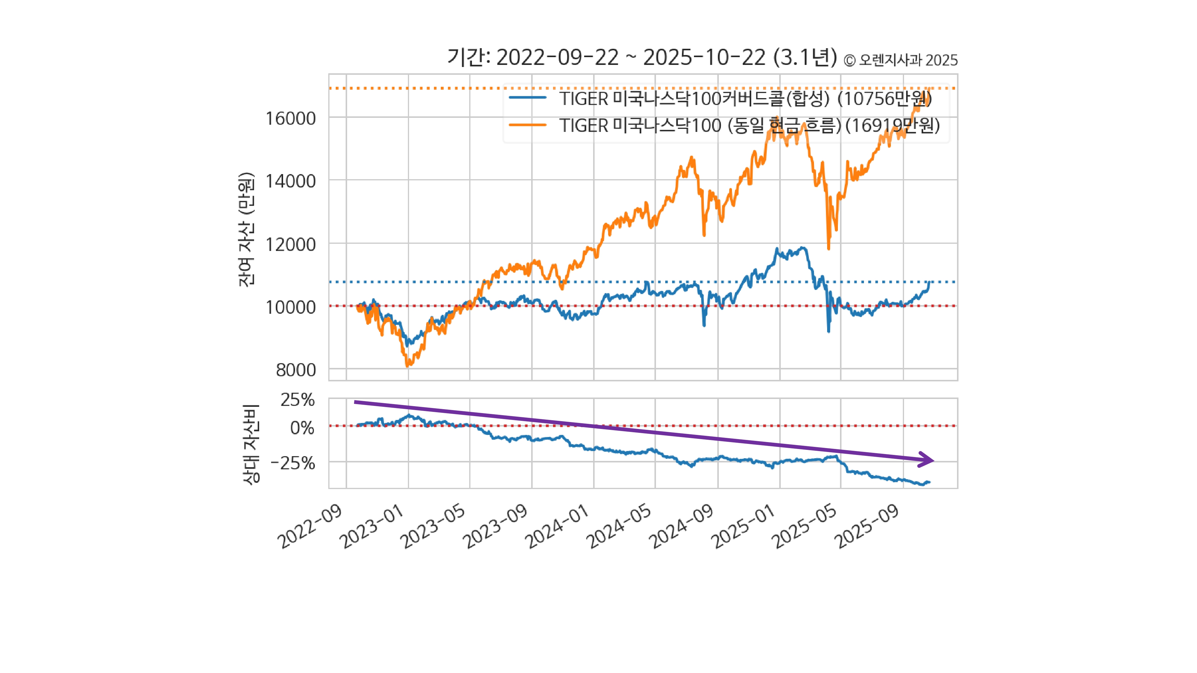 - 횡보장에서의 커버드콜과 기초자산의 성과 비교
