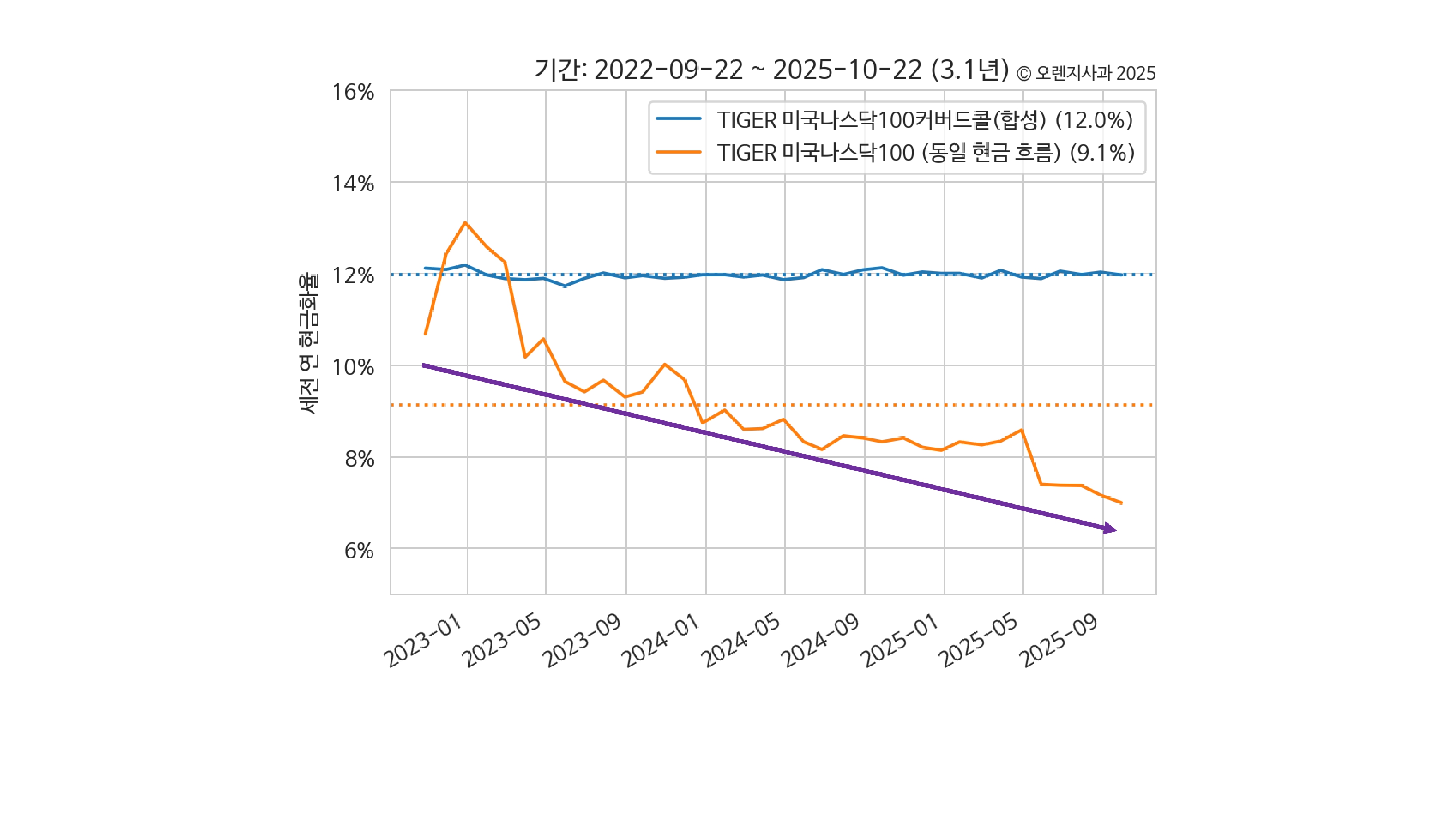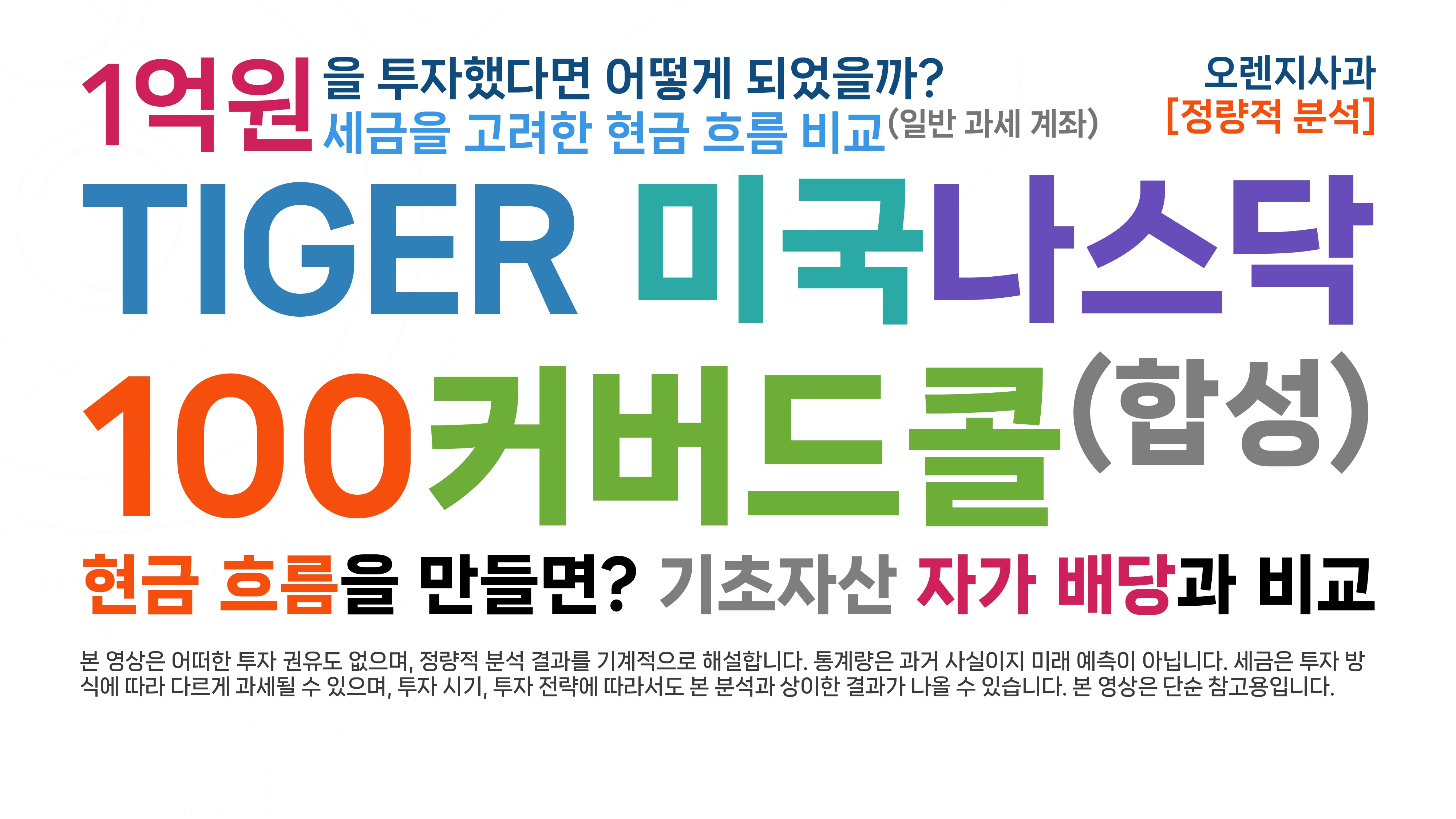 [현금흐름 6] TIGER 미국나스닥100커버드콜(합성) (1억원으로 현금 흐름을 만든다면, vs TIGER 미국나스닥100, 세금 고려, QYLD) - https://youtu.be/gJspaqkxD4E