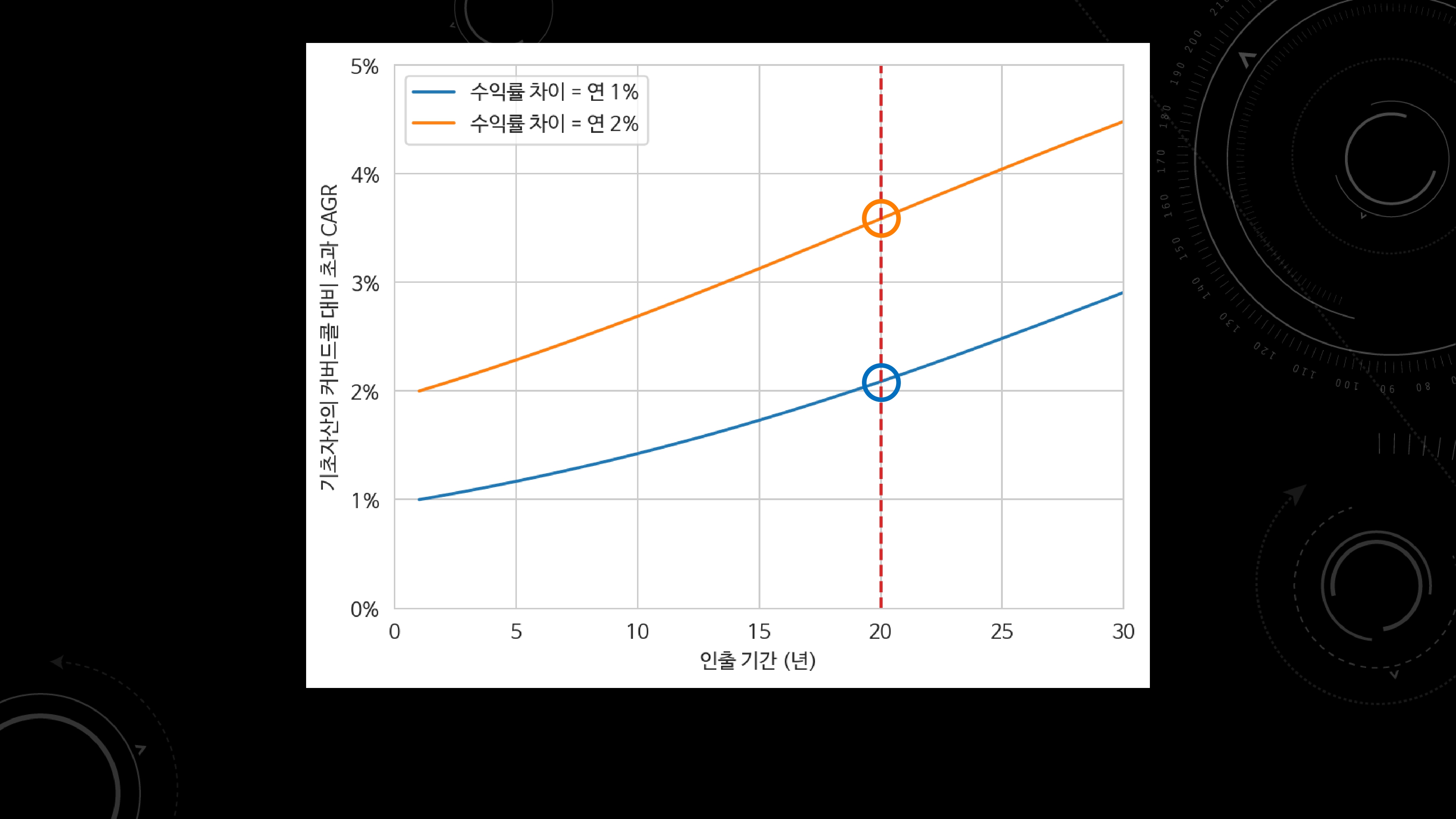 - 동일한 현금 흐름을 만들었을 때, 은퇴 기간에 따른 잔여 자산의 차이