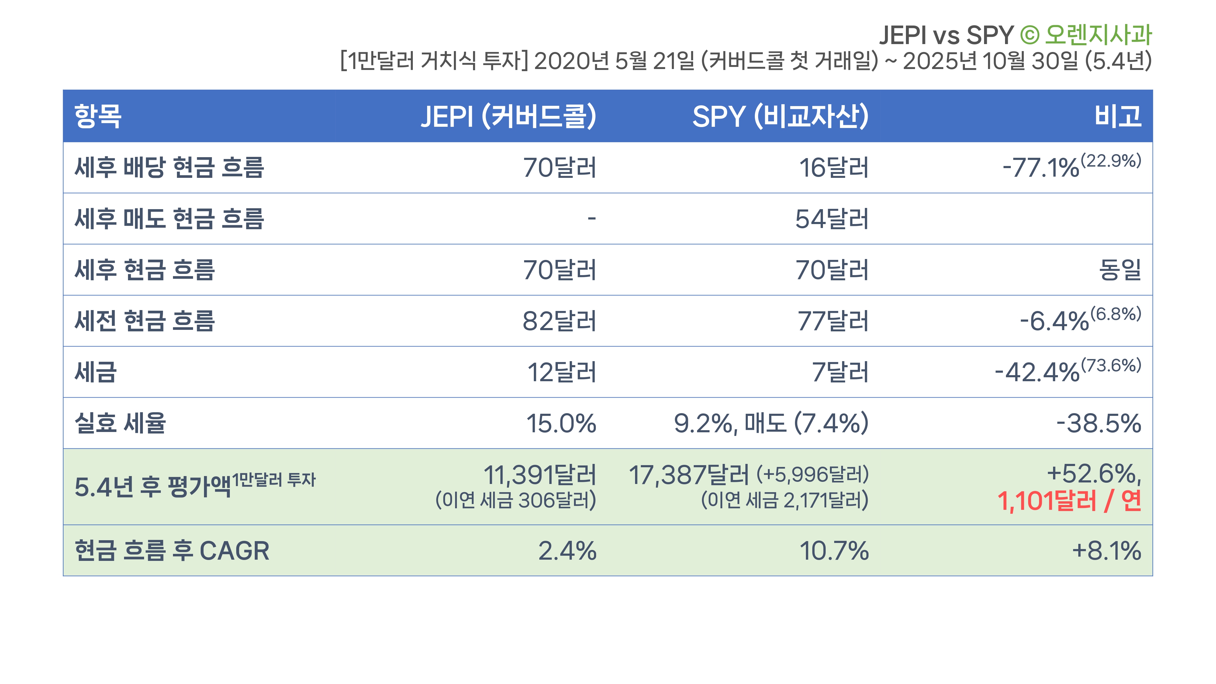[현금흐름 U1] JEPI vs SPY - 세금 고려 커버드콜 현금 흐름 (1만 달러 기준) - https://youtu.be/TtIhflRzjjA