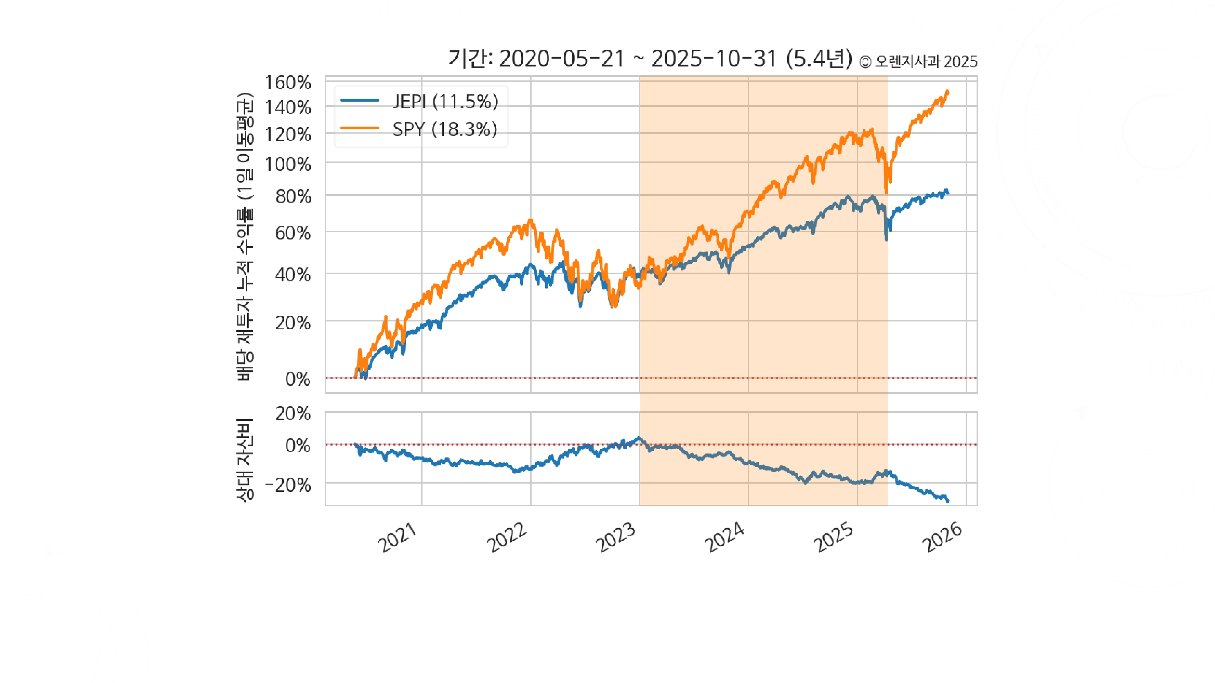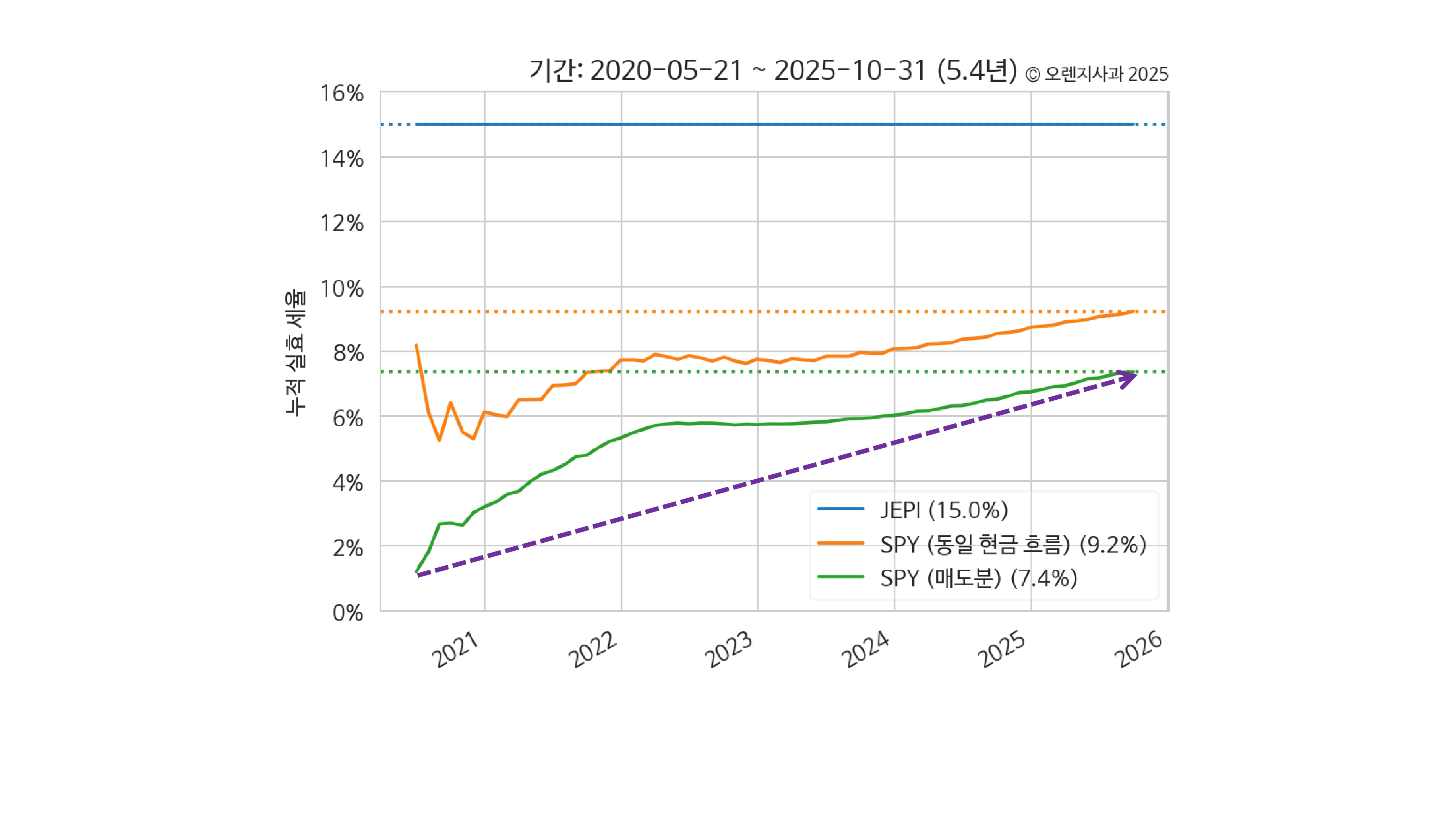 전 세계에 커버드콜 붐을 일으킨 JP모건의 JEPI는 변동성이 낮은 우량주를 기초자산으로 편입하고 ELN을 매입하는 방식으로 만기 분산 전략을 사용하는 액티브 커버드콜입니다. 소개하는 영상에서는 JEPI의 첫 거래일에 JEPI와 SPY에 각각 1만 달러를 투자하고, 동일한 세후 현금 흐름을 만들었을 때, 어떤 결과를 얻게 되었을지 분석해 봅니다.