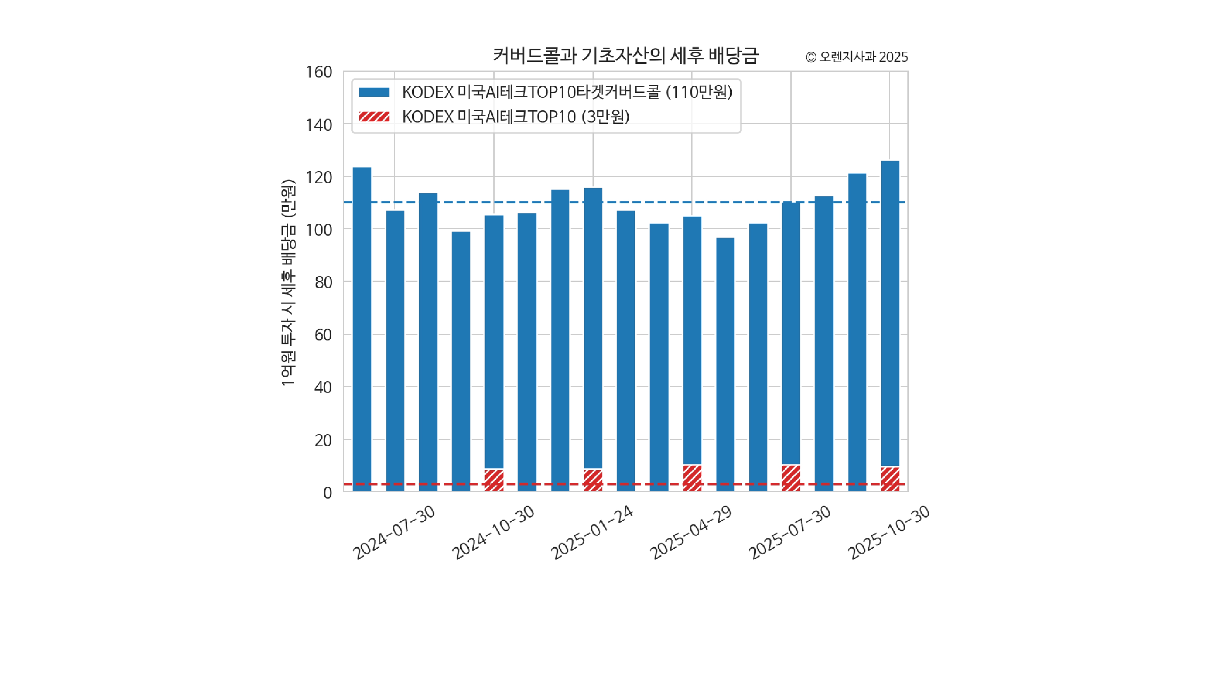 [현금흐름 13] KODEX 미국AI테크TOP10타겟커버드콜 (1억원으로 현금 흐름을 만든다면, vs KODEX 미국AI테크TOP10, 세금 고려) - https://youtu.be/KASlfW37tTE
