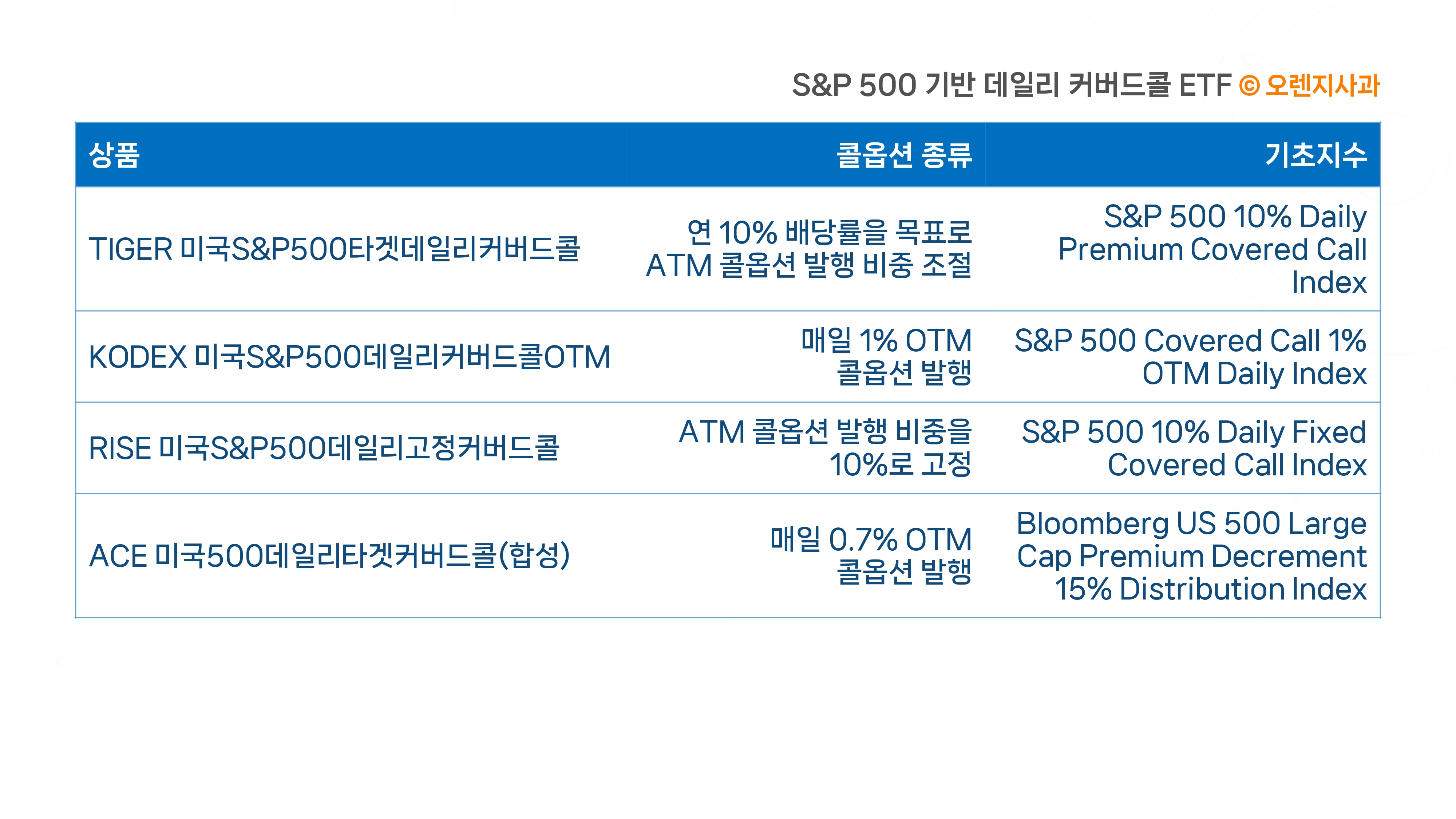 국내 상장된 S&P 500 기반 데일리 커버드콜 ETF